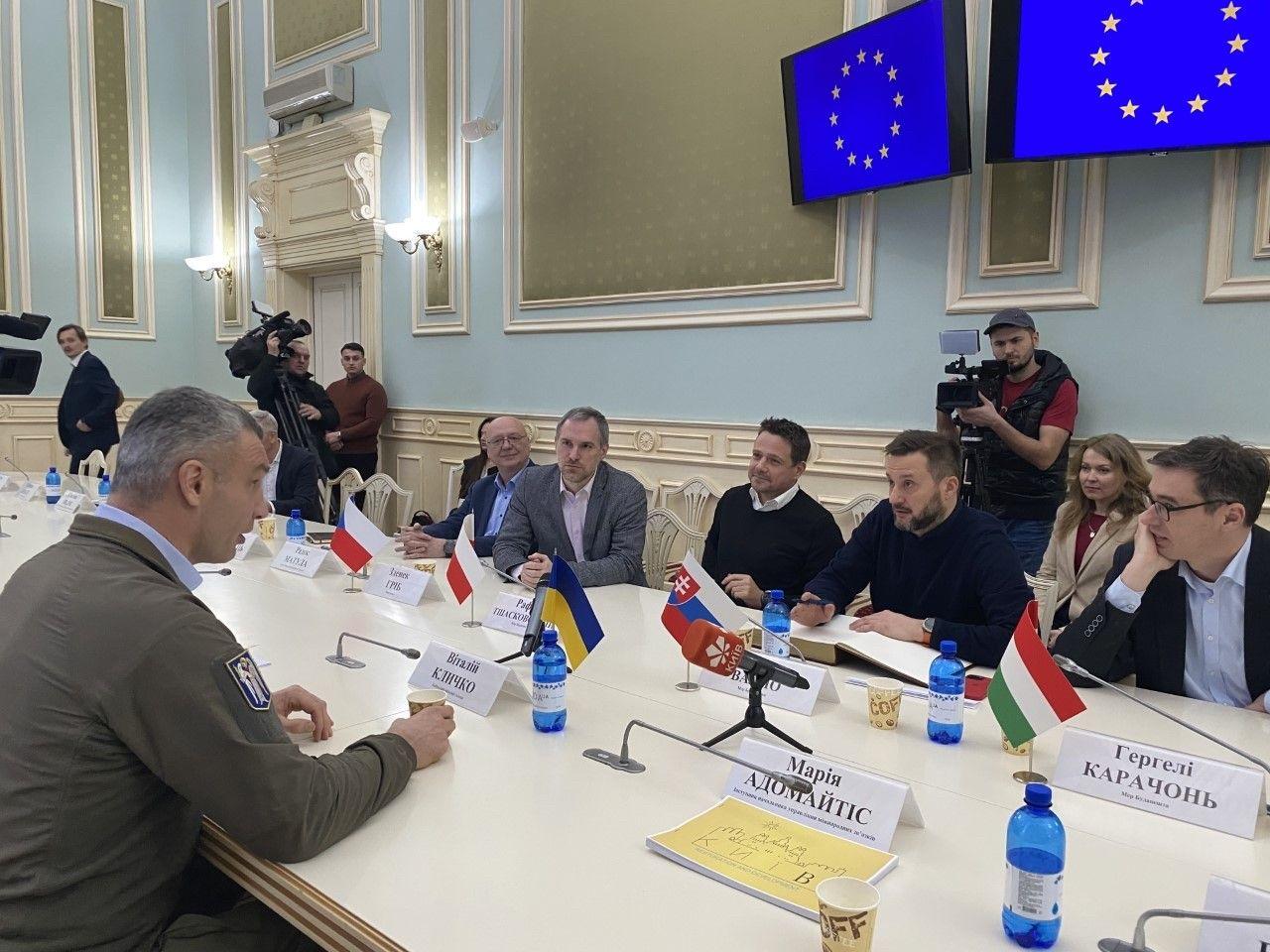 Bratislava, 11. január 2023 - Zakladajúci členovia Paktu slobodných miest sa zúčastnili návštevy Kyjeva. Primátor Bratislavy Matúš Vallo sa spoločne s ďalšími primátormi hlavných miest Vyšehradskej štvorky – Zdeňkom Hříbom - primátorom Prahy, Rafaelom Trzaskowskim – primátorom Varšavy a Gergélym Karaczónym – primátorom Budapešti, stretli s primátorom Vitalijom Kličkom. Jednou z hlavných tém stretnutí bolo vytvorenie platformy pre dlhodobú pomoc a obnovu ukrajinských miest. S  Vitalijom Kličkom, ktorý je zároveň aj predsedom združenia ďalších ukrajinských miest, primátori diskutovali, ako túto novú platformu nastaviť.