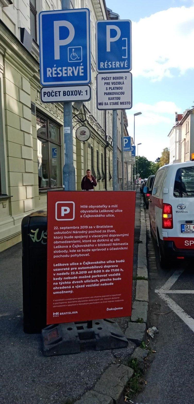 Obyvatelia Leškovej ulice aj Čajkovského ulice budú môcť počas víkendu parkovať na náhradnom parkovisku pod Hlavnou stanicou, keďže túto nedeľu od 8:00 hod. do 17:00 hod. bude zamedzený vjazd vozidiel do danej lokality.