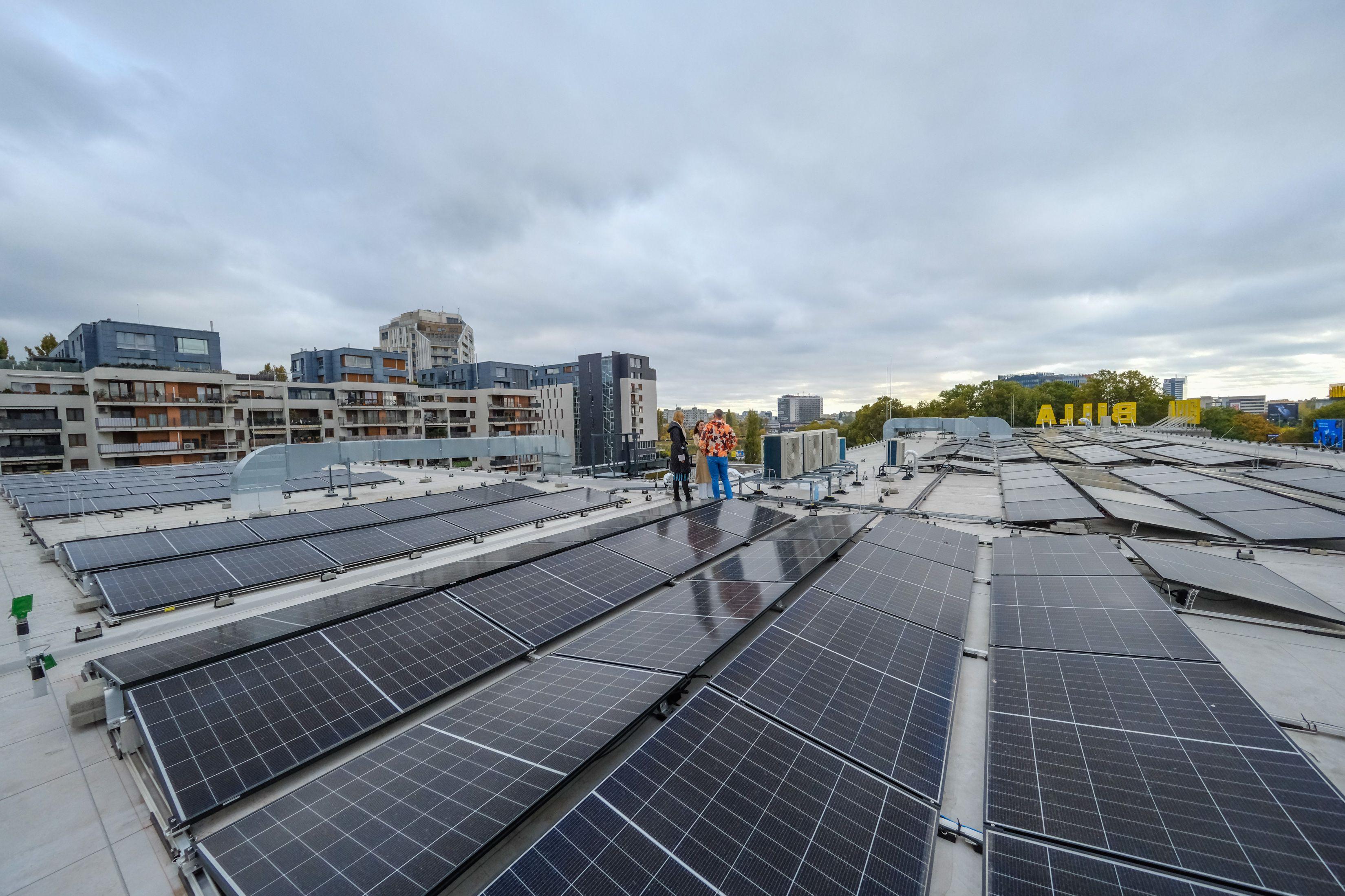 Na streche na Bajkalskej čaká na spustenie fotovoltická elektráreň s výkonom 117 kW, pokryje približne 10 percent ročnej spotreby objektu. Východno-západná orientácia panelov rozkladá výrobu elektriny počas celého dňa a kopíruje rytmus prevádzky, ktorá sa začína na úsvite, keď sa zapínajú pece na chleba. Strecha je využitá na maximum. S rekonštrukciou narástli v predajni BILLA tržby. A s rastúcimi tržbami stúpa aj spotreba energie, preto je vlastná výroba čoraz dôležitejšia.